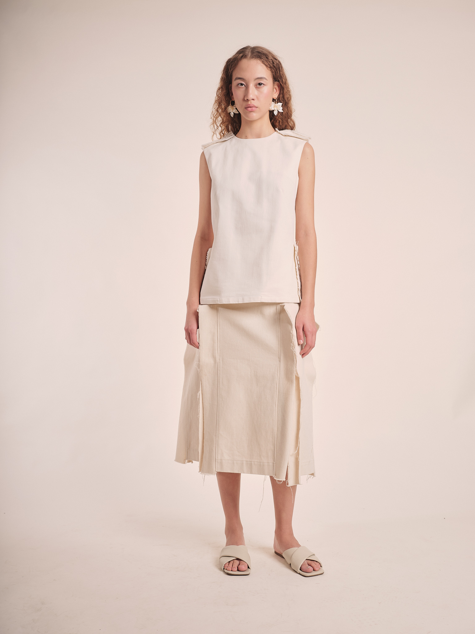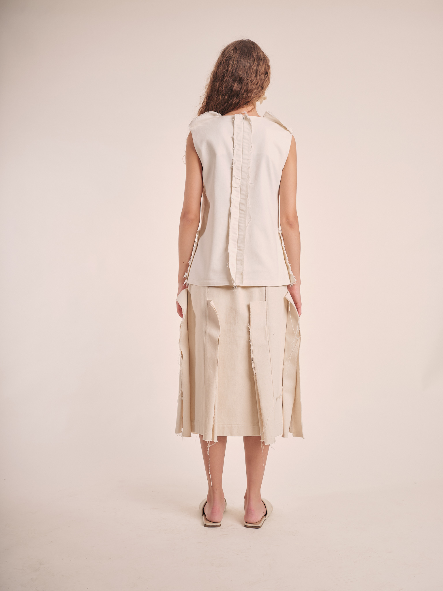 This high rise panelled skirt is made from italian cotton and features frayed fabric inserts.